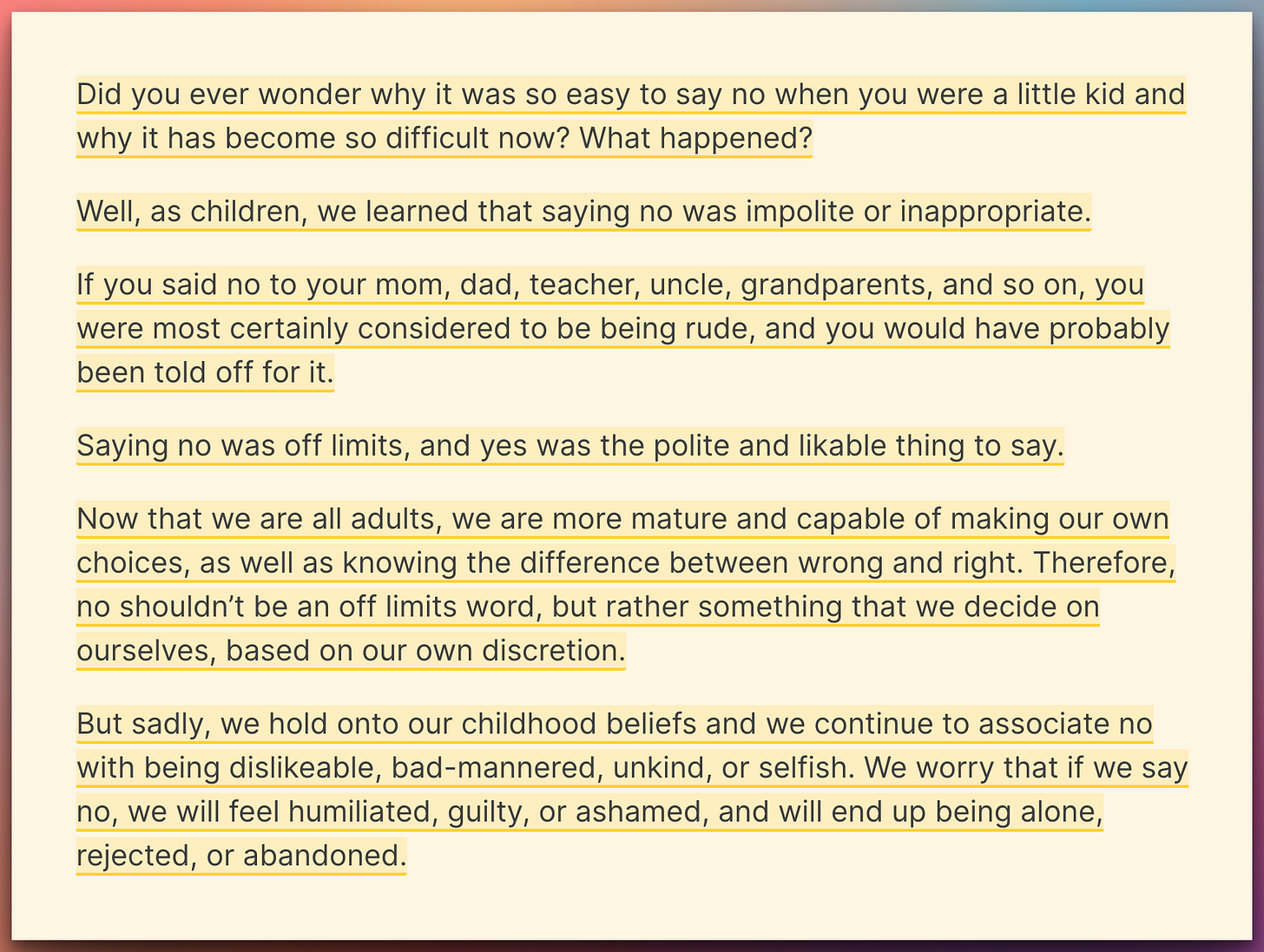 I’ll share them below, but before you get into them, this is my most important insight around the reason for saying no more often -